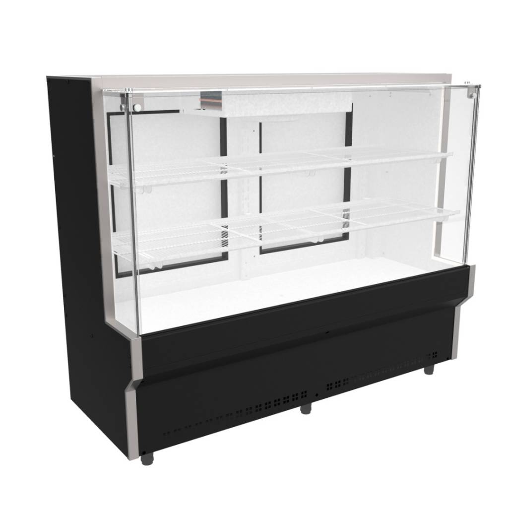 La vitrina refrigerada de vidrio recto Kuma de 2 metros ofrece una solución eficiente para la conservación y exhibición de productos en ambientes comerciales, con un diseño robusto y moderno.